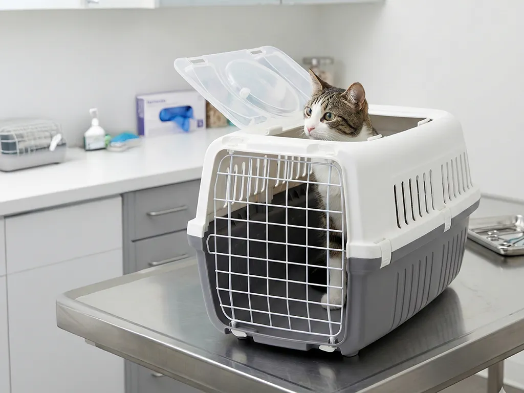 The carrier features a dual door system with a metal coated front door for secure access and a plastic top door for convenient interaction with your pet. This top opening design makes visits to the vet easier and more comfortable, helping you handle your pet gently and stress free.