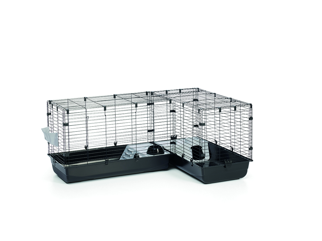 The Cubix Corner is equipped with two large doors that can be positioned flexibly—either on top (left or right) or front (left), allowing for easy access and versatile placement within your home. It comes complete with two platforms, feeding bowls, and a hay rack, ensuring that your pet has everything they need for a happy and healthy life.