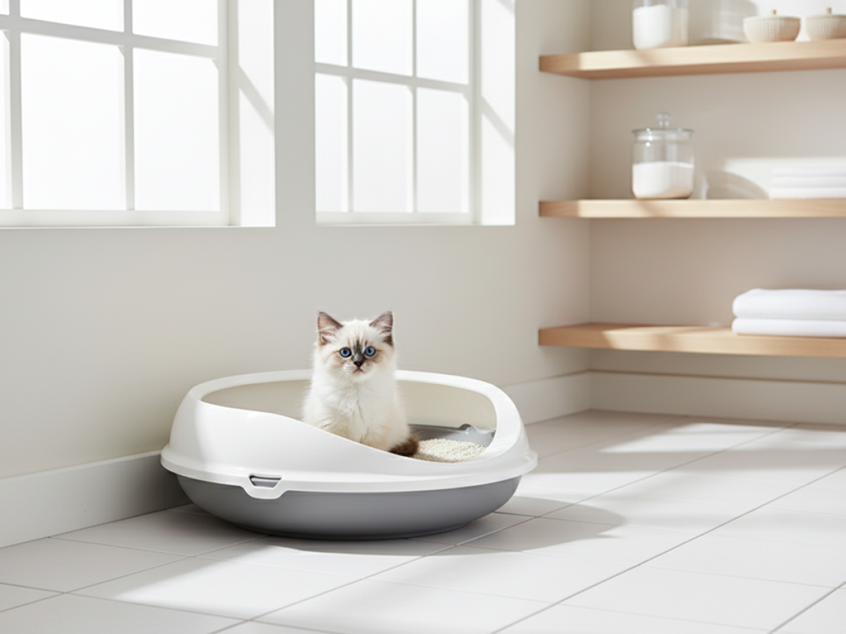 A lowered entrance makes the Figaro litter tray easily accessible for kittens, elderly cats, and cats with mobility issues, ensuring comfort and ease of use for all feline companions.