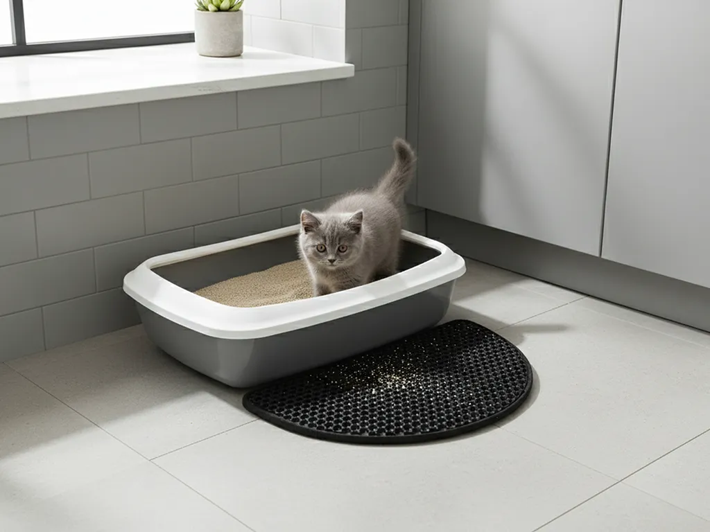 Finished in black, the mat fits discreetly into any home. Its standard size works with all litter trays and toilet homes, creating a clean and hygienic area around the litter box.