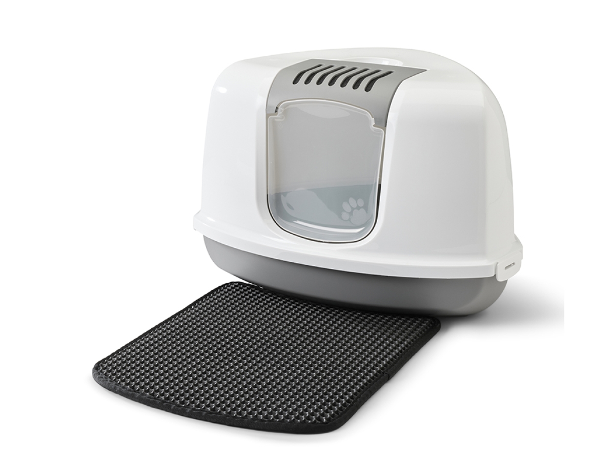 The cool grey base with a white hood blends naturally into modern interiors. Made from durable PP plastic, the litter box is long lasting and easy to wipe clean. Smooth interior surfaces support fast, practical daily maintenance.