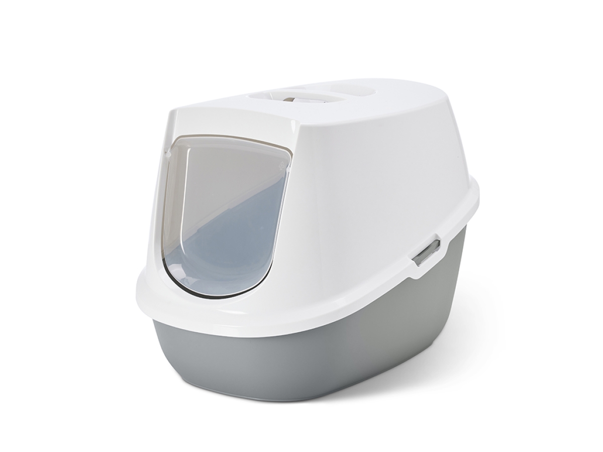 The hood of the Robin toilet home is securely fixed to the litter tray with easy-release clips, simplifying the process of cleaning. An integrated handle makes the toilet easy to move around, adding convenience for daily maintenance and placement adjustments.